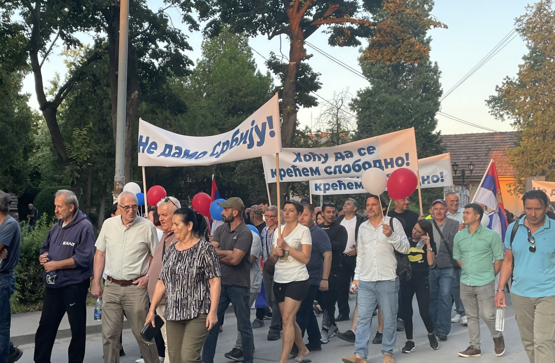 Na današnjem skupu bilo je više ljudi nego na skupu koji je održan u sredu, 20. avgusta. Okupljeni su nosili transparetne "Bori se protiv blokada", "Ne damo Srbiju", "Hoću moju Srbiju nazad", "Hoću da radim", "Hoću da učim", "Hoću da se krećem slobodno".