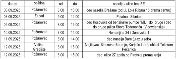 Ogranak Elektrodistribucija Požarevac izvodiće radove na redovnom održavanju ili rekonstrukciji distributivne elektroenergetske mreže i trafo-stanica radi unapređenja kvaliteta napajanja električnom energijom i seči rastinja u trasi dalekovoda ili niskonaponske mreže.