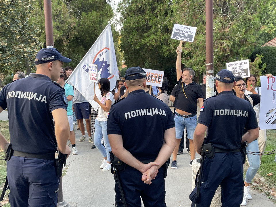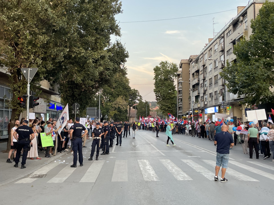Nakon što je kolona SNS-a obišla trasu i vratila se do stranačkih prostorija, deo okupljenih građana odlučio je da krene ka njima, ali je policija u jednom trenutku formirala kordon koji nije dozvolio prolaz ka tom pravcu.