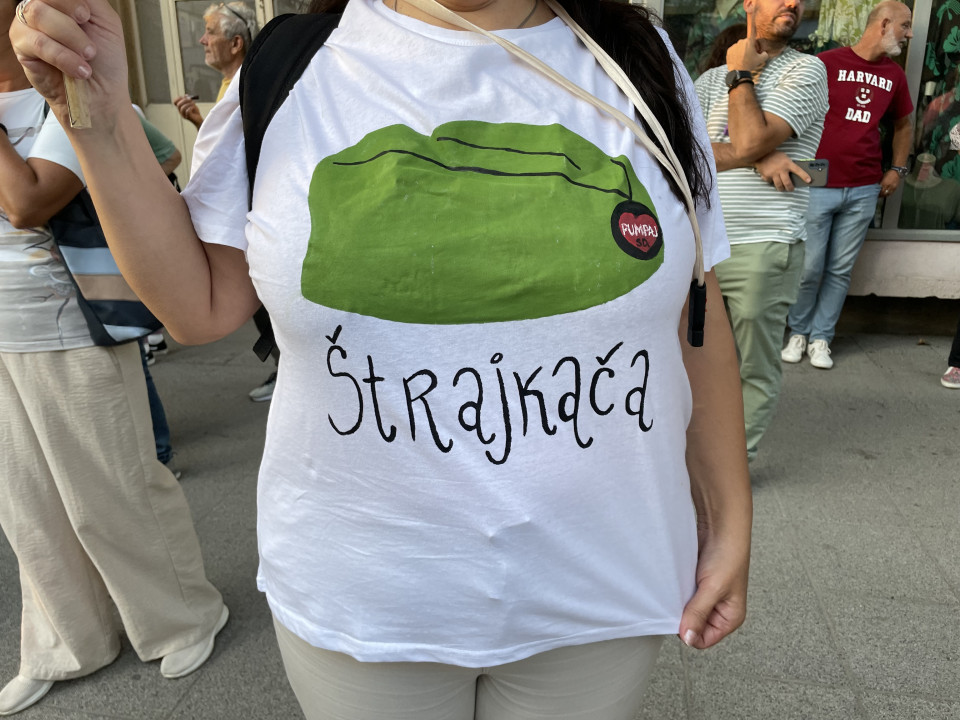 Građani su držali transparente poput "Može da preti, ali ne može da pobedi narod", "Kada je masa ucenjena vlast je jeftina", "Javna preduzeća, tajne pljačke", "Korupcija raste, narod propada".