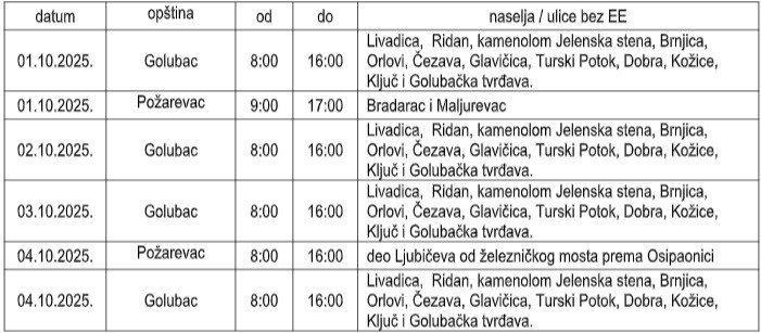 Bez električne energije će biti korisnici na sledećim lokacijama: