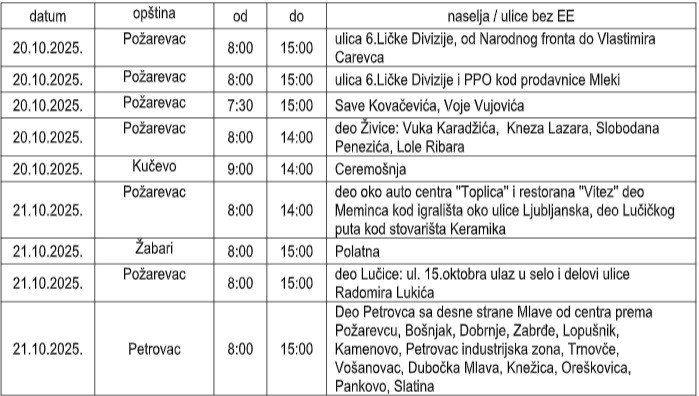 Planirana isključenja struje 20. i 21. oktobra