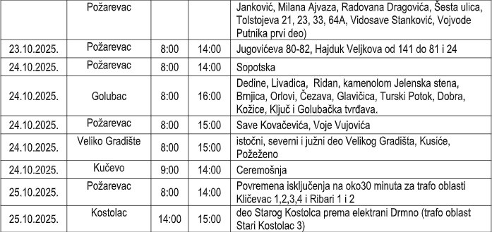 Ogranak Elektrodistribucija Požarevac izvodiće radove na redovnom održavanju ili rekonstrukciji distributivne elektroenergetske mreže i trafo stanica radi unapređenja kvaliteta napajanja električnom energijom i seči rastinja u trasi dalekovoda ili niskonaponske mreže.