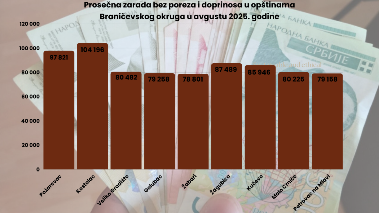 Ono što se ne menja u odnosu na prethodne mesece jeste da prosečna zarada bez poreza i doprinosa u pet opština Braničevskog okruga niža od iznosa medijalne zarade u Srbiji. U pitanju su opštine Petrovac na Mlavi, Veliko Gradište, Golubac, Žabari i Malo Crniće.