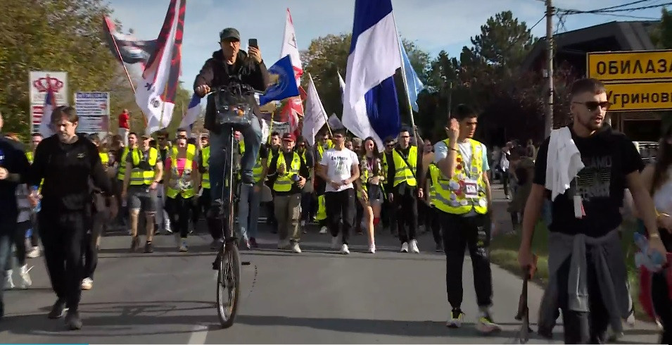 Studenti iz Novog Pazara koji pešače 15 dana su, kako javlja reporterka N1, umorni, ali da su im osmesi na licu.