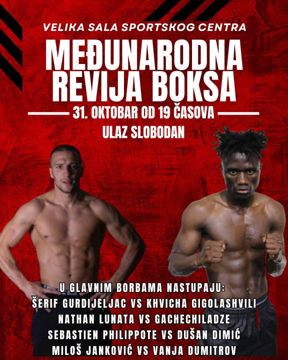 Međunarodna bokserska revija održaće se u velikoj sali Sportskog centra, u petak 31. oktobra u 19h.