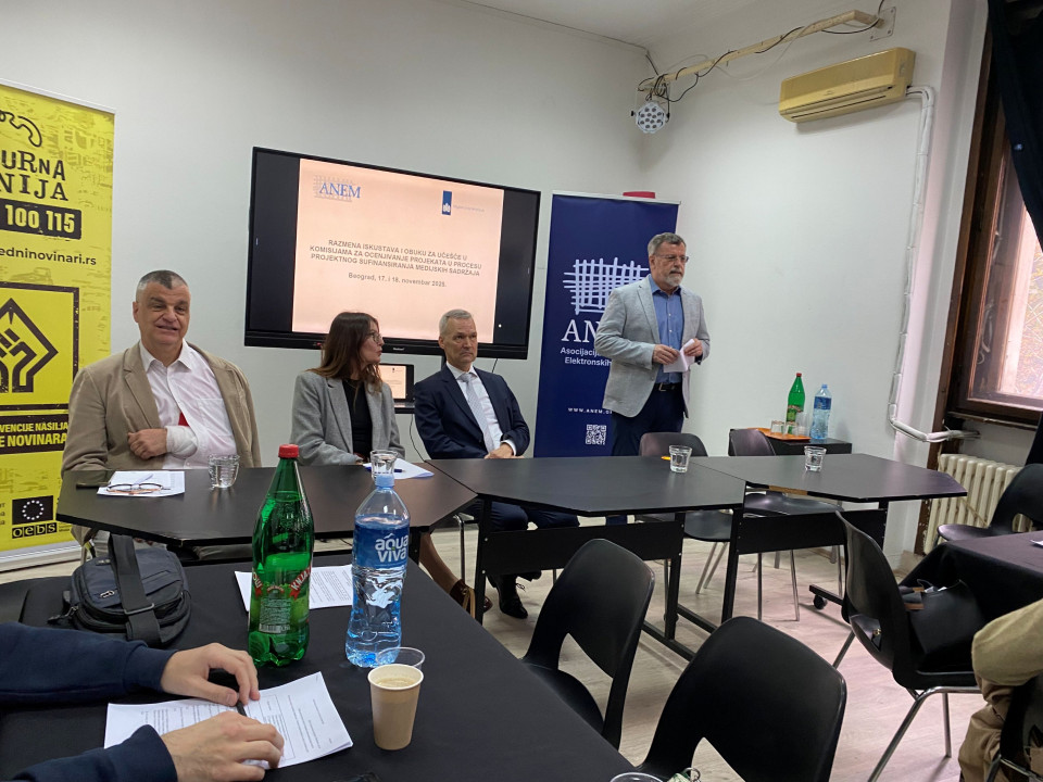 Proces projektnog sufinansiranja medijskih sadržaja u Srbiji suočava se s nizom problema, nepravilnosti i političkih zloupotreba, zaključeno je prvog dana skupa „Razmena iskustava i obuka za učešće u komisijama za ocenjivanje projekata u procesu projektnog sufinansiranja medijskih sadržaja“, koji organizuje Asocijacija nezavisnih elektronskih medija (ANEM) u saradnji s medijskim i novinarskim udruženjima UNS, NUNS, Lokal Pres i Asocijacija medija.