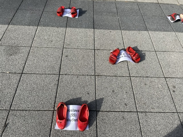 Prema rečima Marije Đorić iz Femin kolektiva, današnji performans predstavlja broj žena koje su od početka godine ubijene, a one su predstvaljene crvenim cipelama.