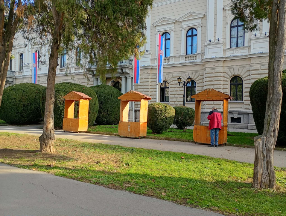 Kućice namenjene prodaji u okviru novogodišnjeg vašara postavljene su u Gradskom parku, ali prodavaca još uvek nema.