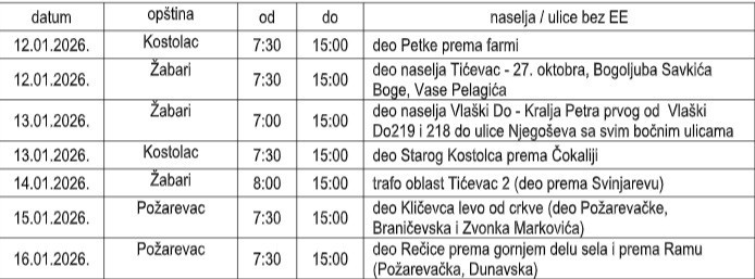 Isključenja struje od 12. do 16. januara