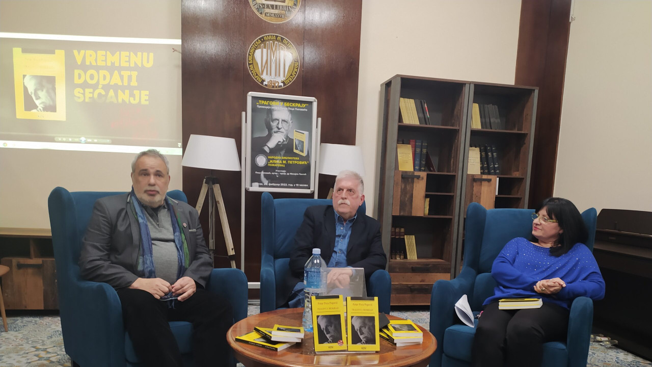 U Narodnoj biblioteci „Ilija M. Petrović“ u Požarevcu predstavljena je knjiga „Tragovi u beskraju“ autora Petra Pece Popovića u izdanju Književne opštine Vršac.