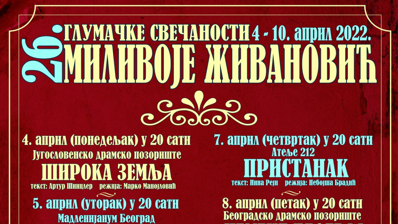 Poznat program glumačkih svečanosti „Milivoje Živanović“